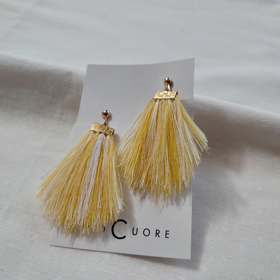 播州織タテ糸イヤリング「ミニタッセル」(イエロー)/CUORE
