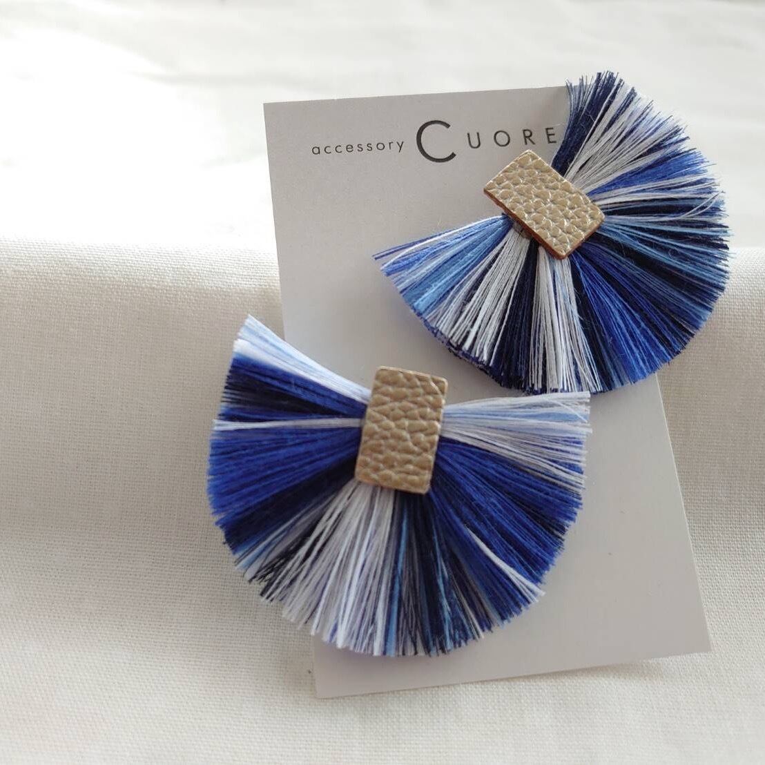 播州織タテ糸ピアス「扇」(シルバー×ブルー)/CUORE