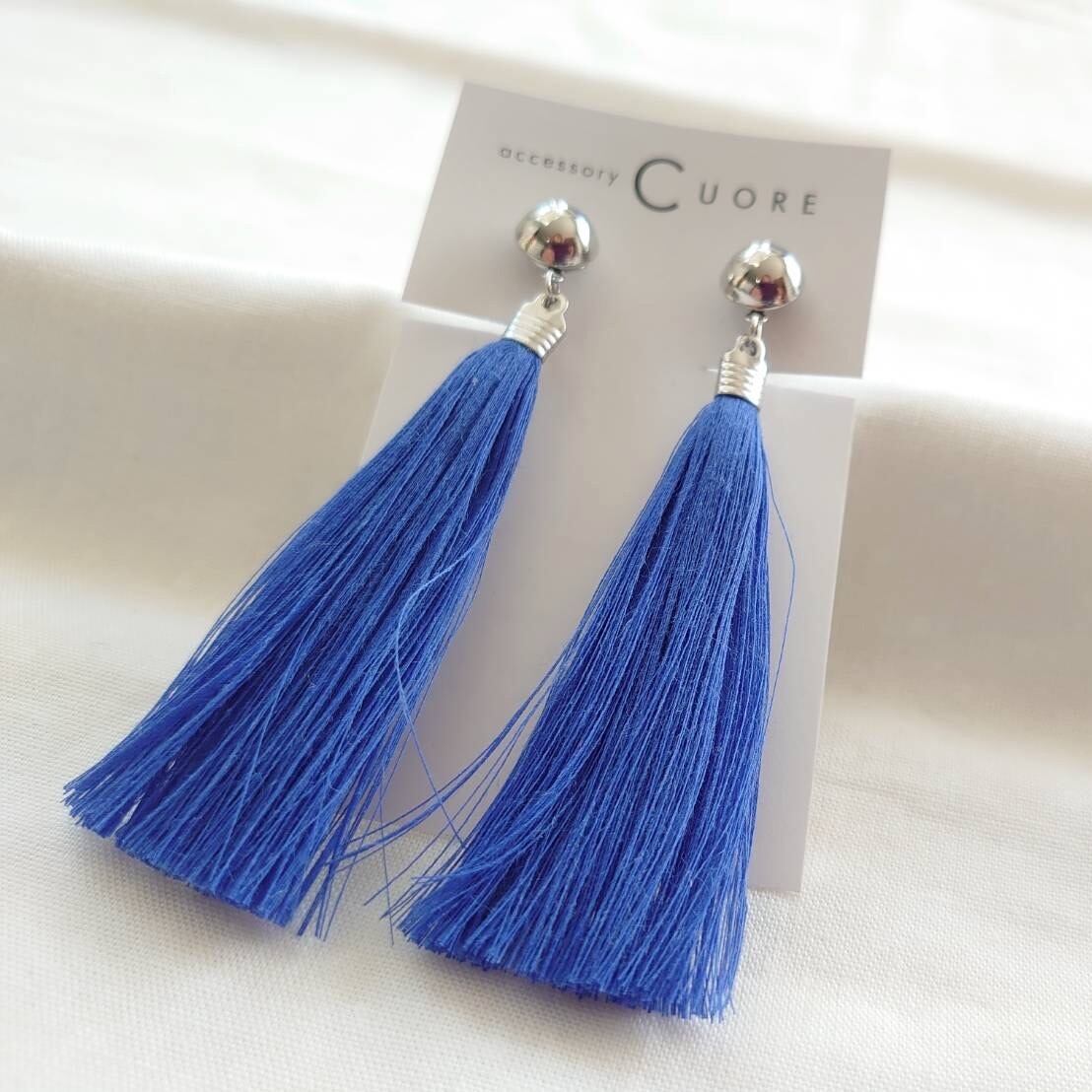 播州織タテ糸イヤリング「タッセル」(ブルー)/CUORE