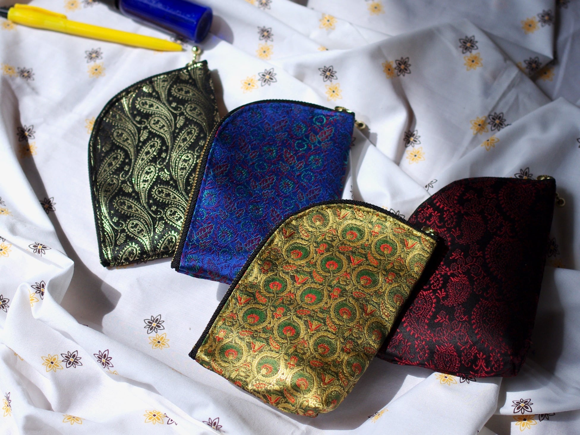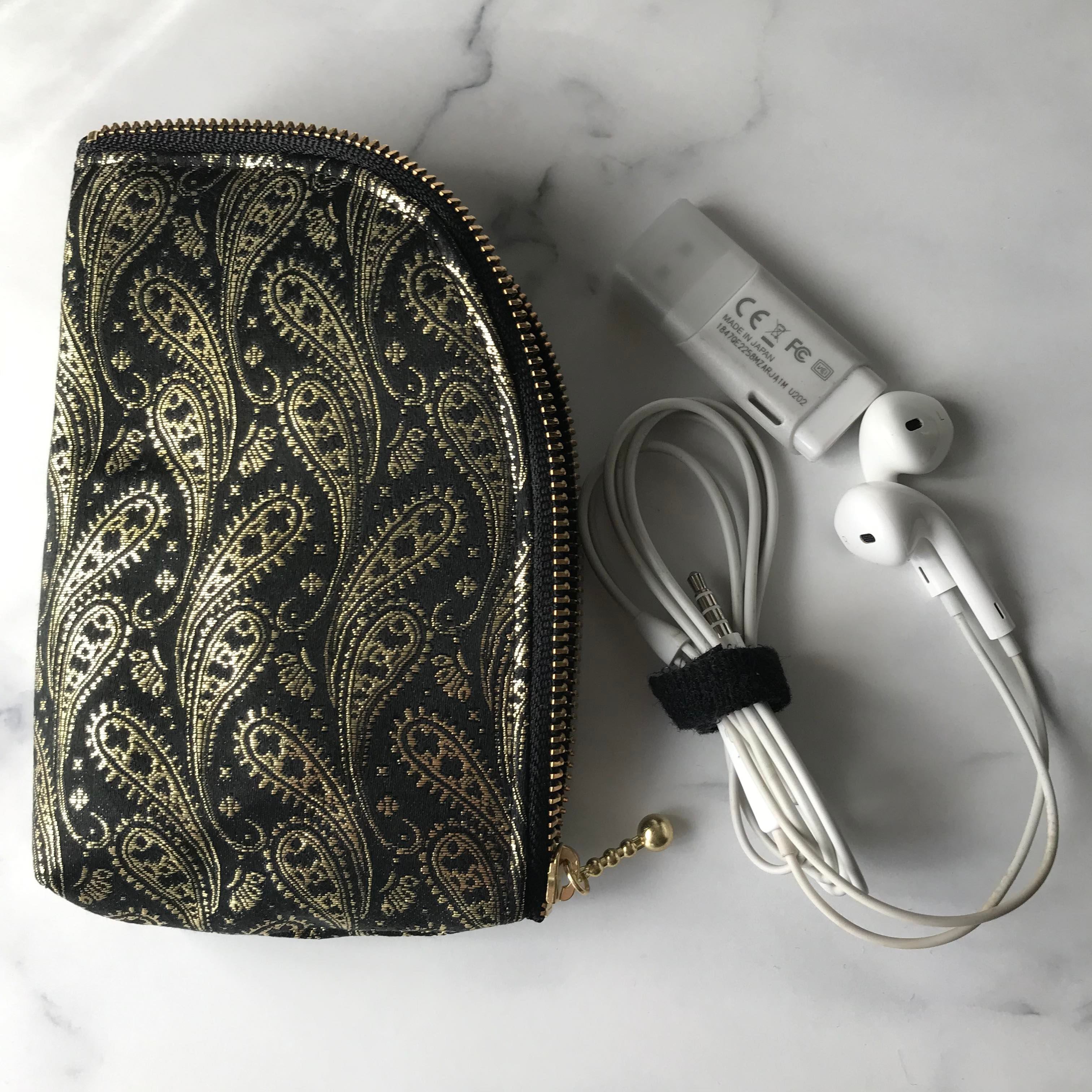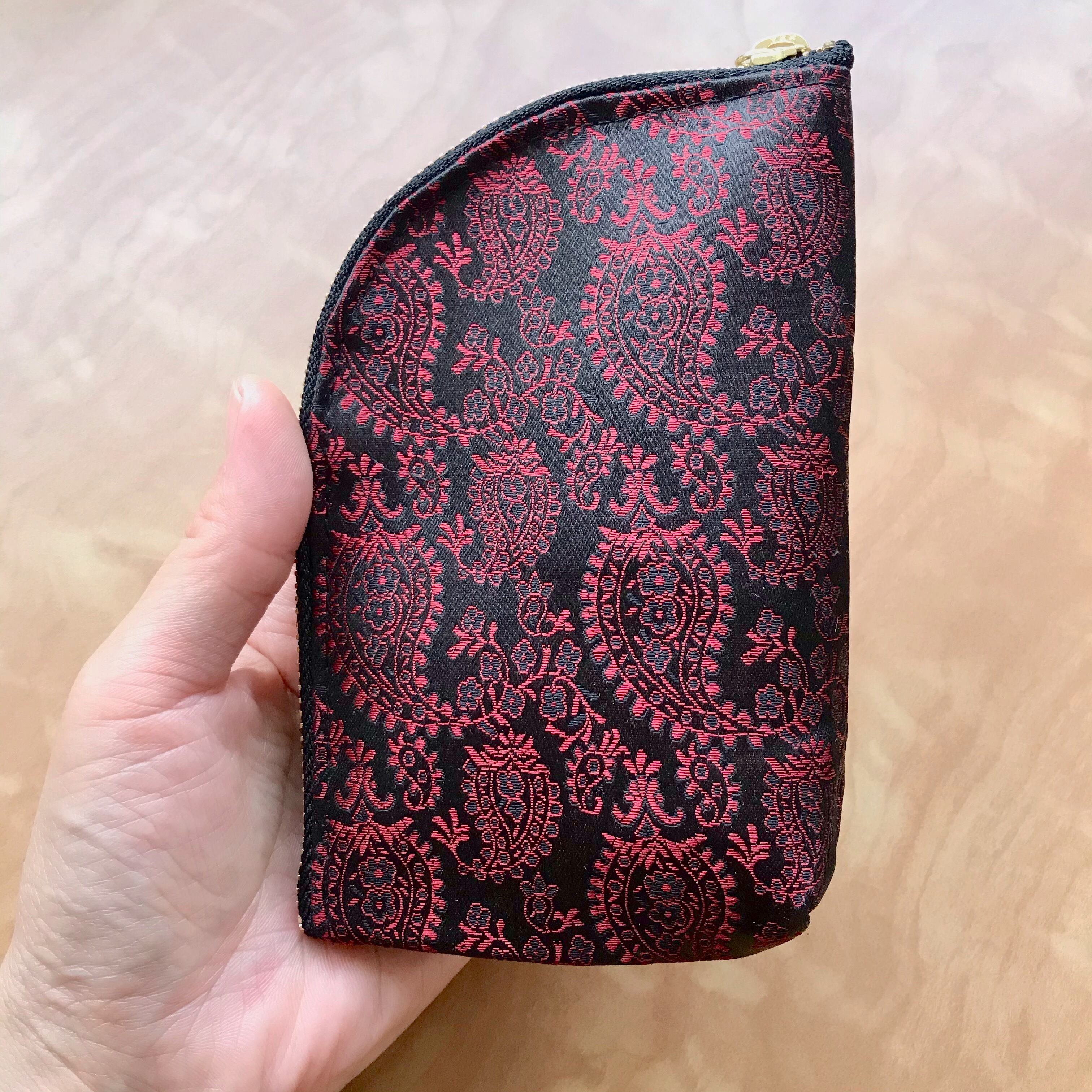 シリア・ダマスカス近郊の工場でつくられた美しいペーズリー柄のダマスク織生地が、つかいやすい手のひらサイズのマルチポーチになりました。ファスナー開閉がしやすく、持ち歩きの化粧品やお薬、イヤホンなどを入れたり、コインケースにしたり、さまざまな用途におつかいいただけます。