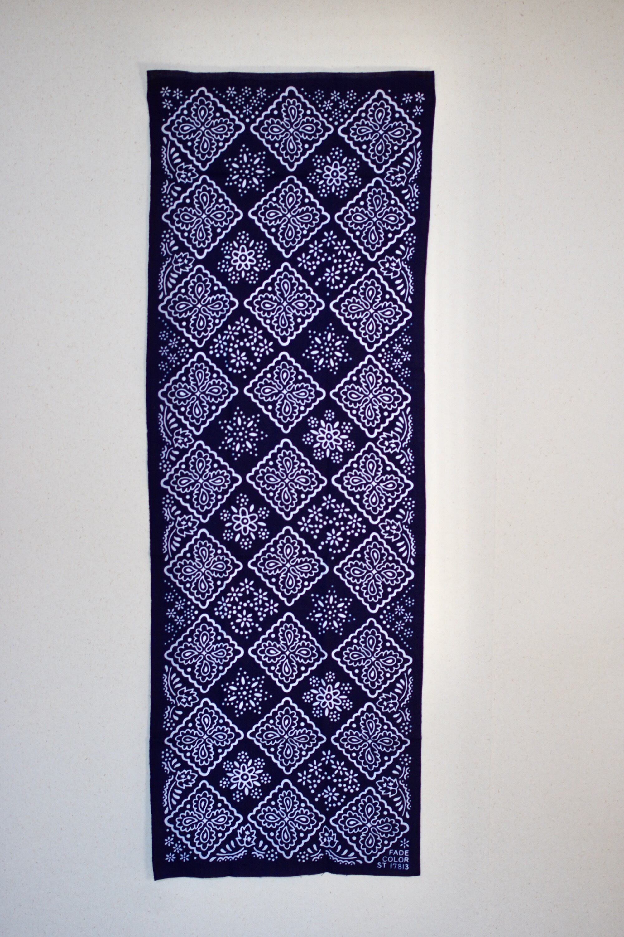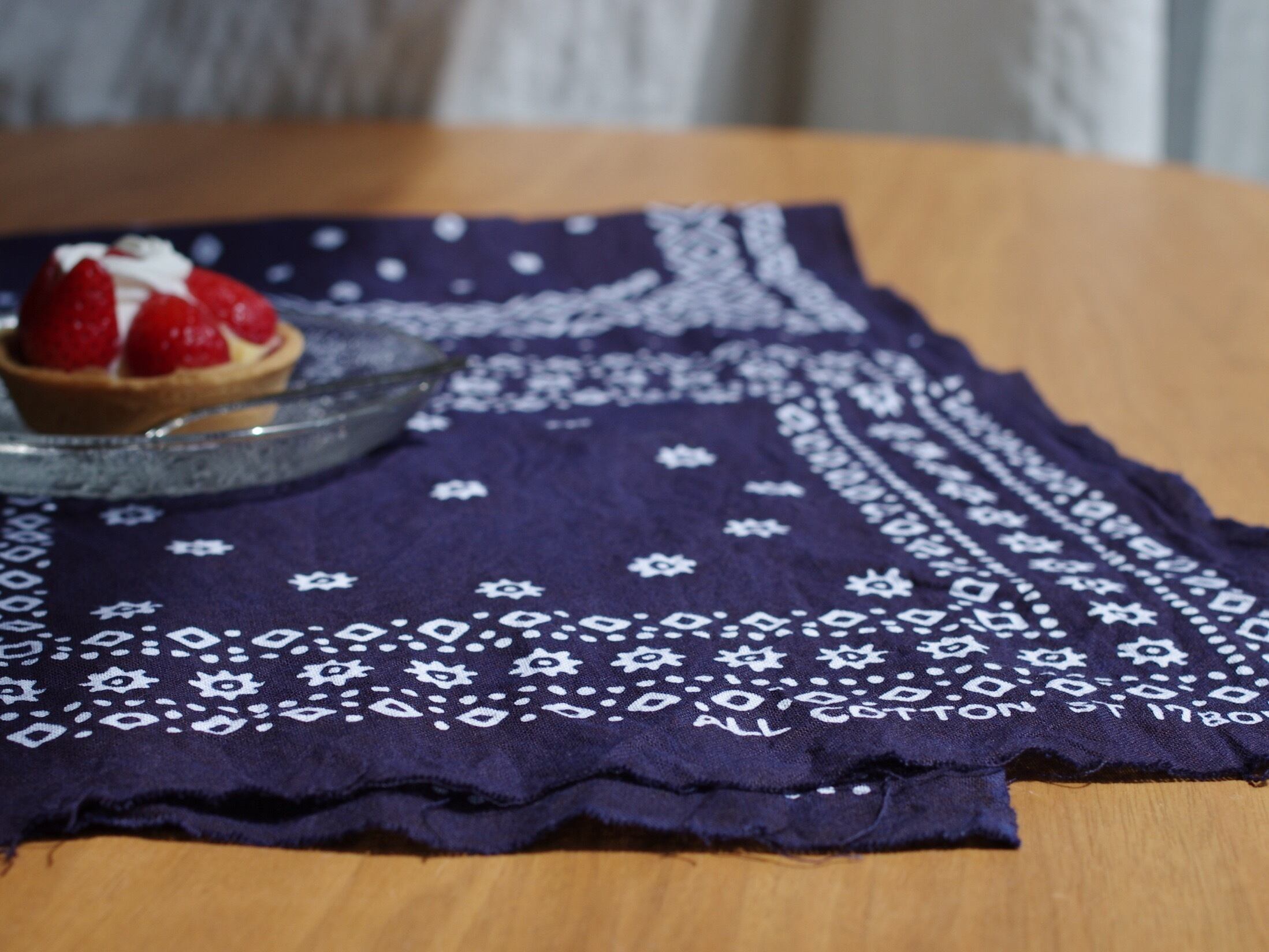 ヴィンテージバンダナを参考にしたデザインの手ぬぐい。日本の伝統的な染色技法「注染」で細かなデザインを表現しています。こちらは、名前の通りクッキーのようなモチーフが並んだ柄。