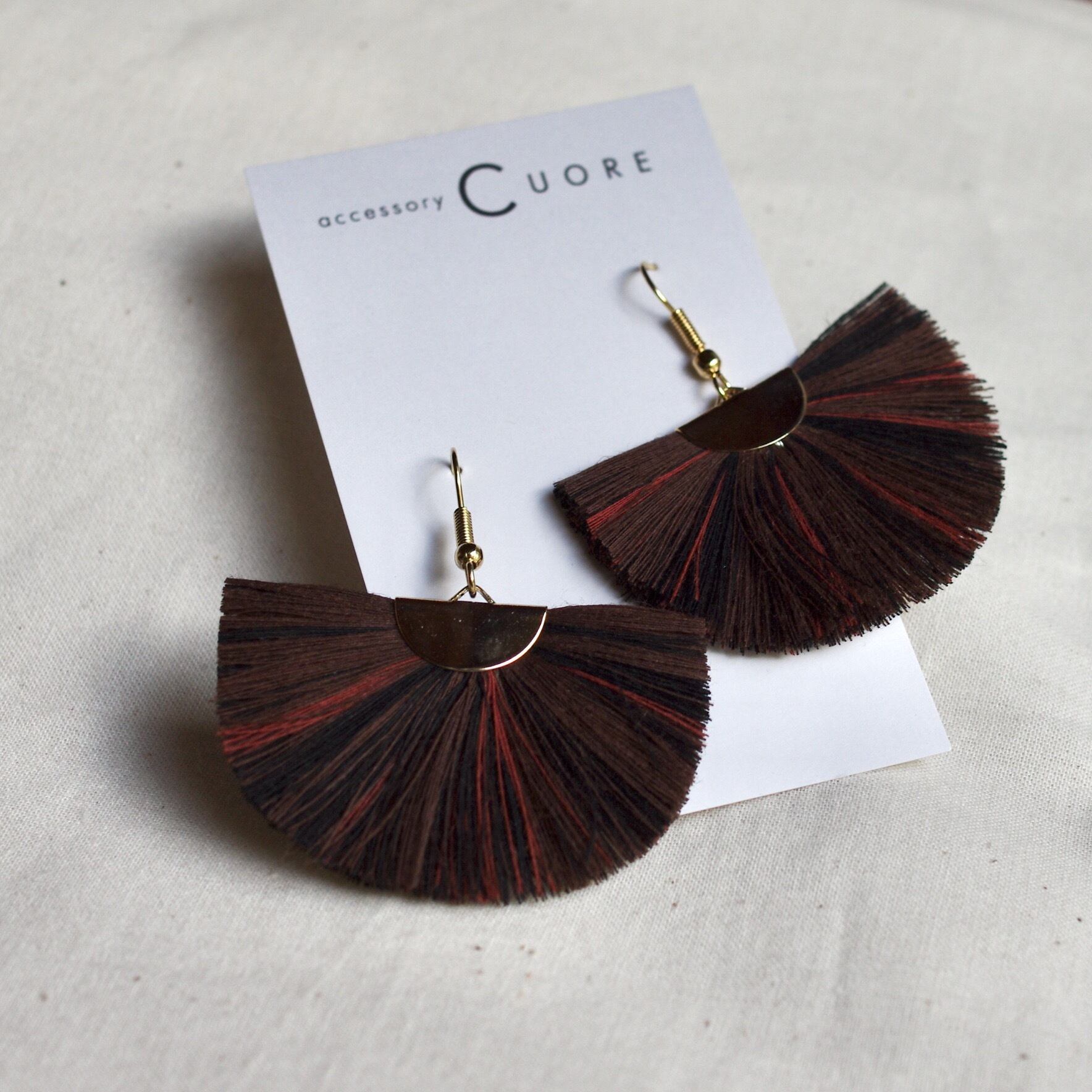 播州織タテ糸ピアス「扇」(ブラウン)/CUORE