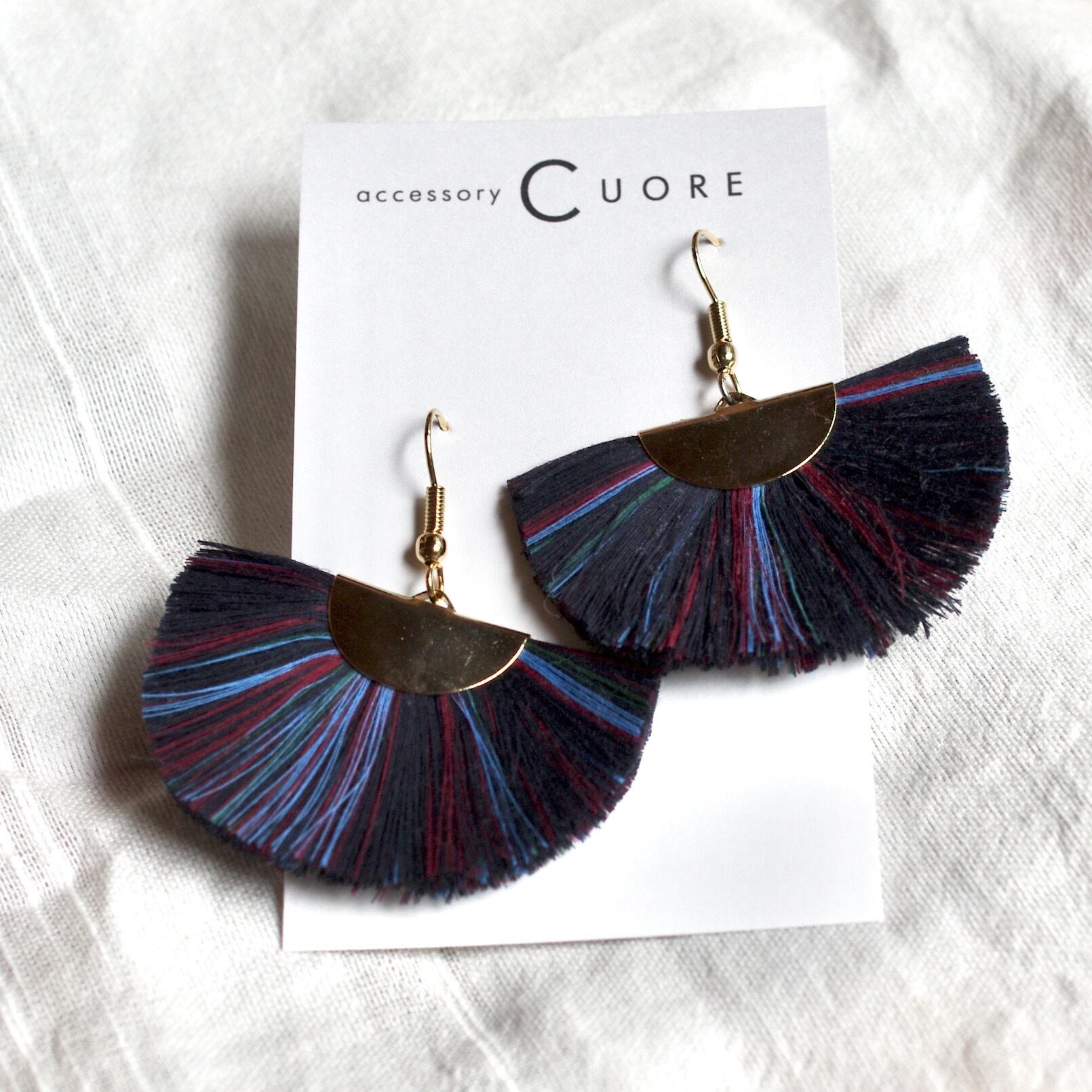 播州織タテ糸ピアス「扇」(ネイビーミックス)/CUORE