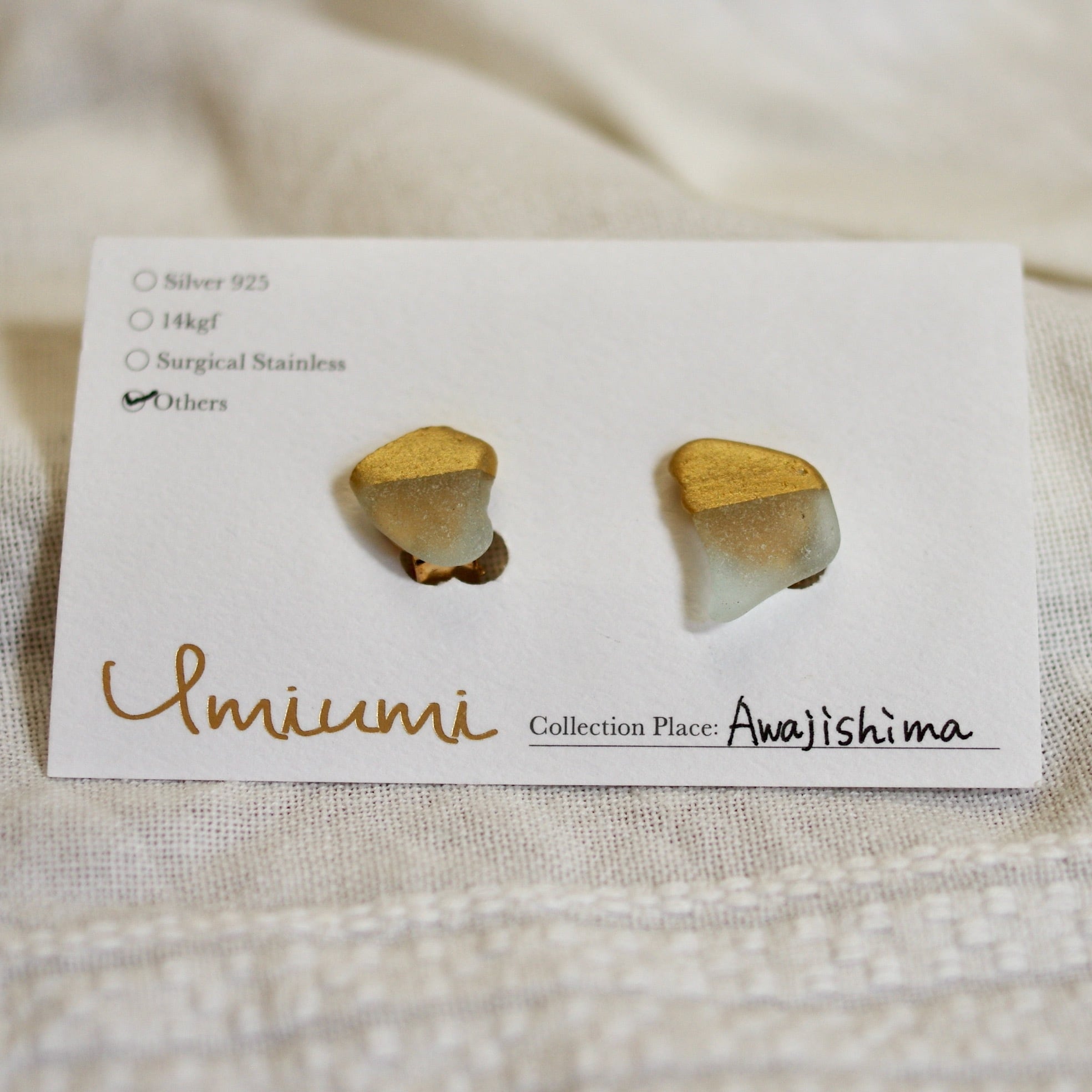 漂着したガラスのイヤリング「ムギワラ(from淡路島)」(ホワイト)/UMIUMI