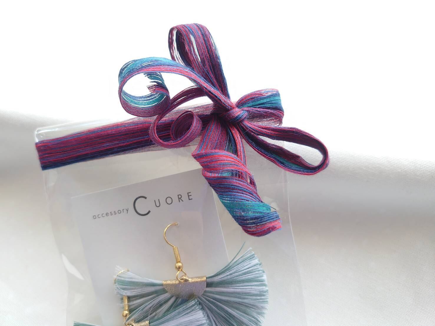 播州織タテ糸ピアス「扇」(ピンクミックス)/CUORE