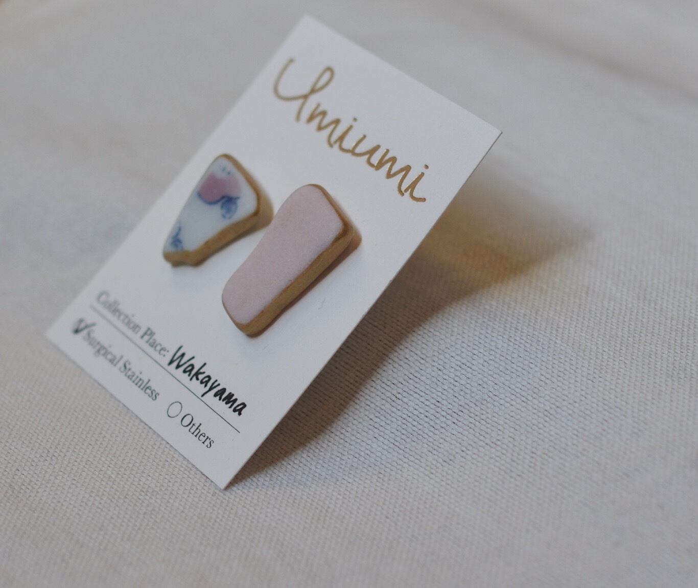 漂着した陶器のピアス「キンノワ(from和歌山)」(ピンク系)/UMIUMI