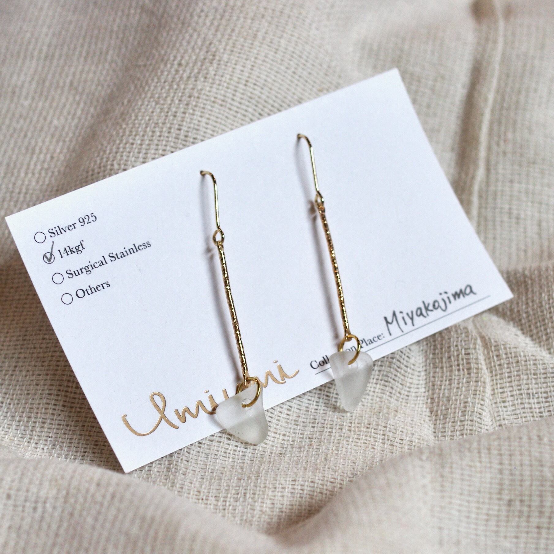 海辺に漂着したガラスの揺れるピアス「stick」(from宮古島)(ホワイト・14金)/UMIUMI